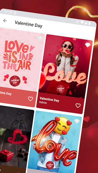 Uzun mesafeli bir ilişkideyseniz veya sevdiğiniz biri yurtdışında yaşıyorsa, Sevgililer Günü uygulamasının özelliklerinden yararlanarak sevginizi göstermenin daha iyi bir yolu yoktur. Yüksek çözünürlüklü romantik temalı duvar kağıtlarına sahiptir ve kalbinize yakın herkesle paylaşabilirsiniz. Bir fotoğrafa dokunduğunuzda, düzenle, uygula, indir, favori ve yorum düğmelerini içeren bir arayüzle karşılaşacaksınız.